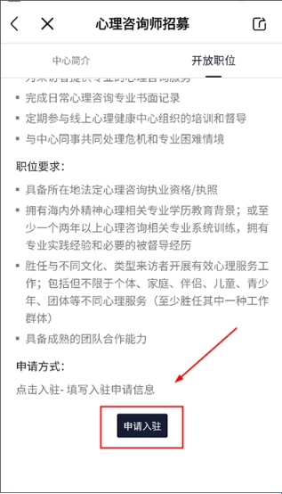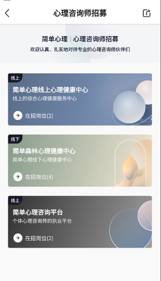 3、在【心理咨询师招募】页面,用户可根据自身的情况来选择入驻岗位