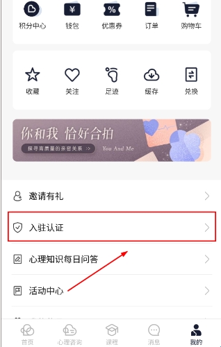 2、在个人中心页面内,在下方查找到【入驻认证】