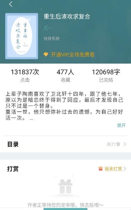 4、详细的小说信息,进入小说介绍页面,就可以查看小说的作者、评论和目录;