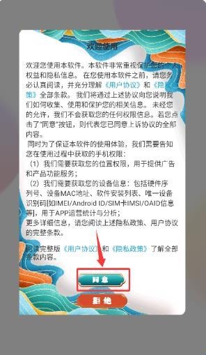 1、打开软件后在欢迎窗口内点击同意按钮,确认用户协议与隐私政策条款。