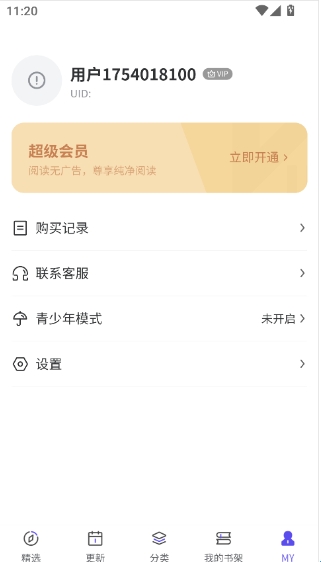 在“我的”中可以看到购买记录、设置、客服等,账号登录后还能跨设备同步阅读数据,整体更贴合个人使用习惯。
