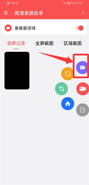 2、在主界面点击悬浮球,开启录制功能。