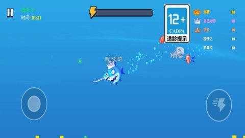 吃食物以获得提升和更高的分数。通过从侧面和后面攻击来消灭其他鱼。