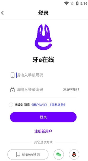 1、先从本站下载好牙e在线app最新版,下载完成后,打开软件,进行注册登录。