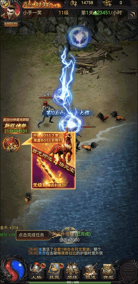 2、接着,在游戏中需要不断的升级,打怪才能获得更高、更强的游戏体验;
