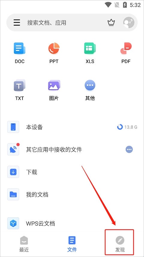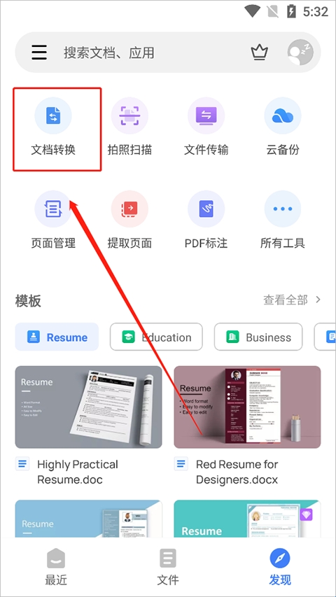 2、在“发现”中选择“文档转换”。