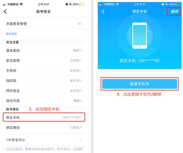 如何更换绑定/解除绑定的手机号码?
