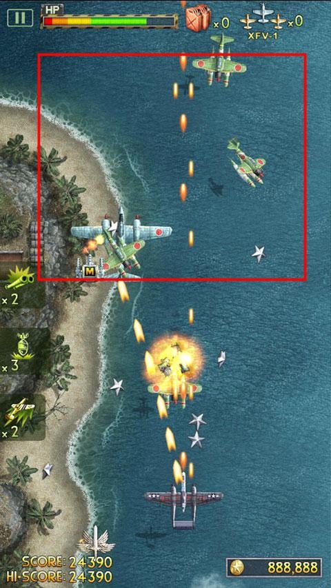6、来到战场,需要与对面大量敌机进行战斗,主战机会自动发射炮火;