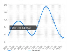 6、通过曲线图显示具体的潮汐起伏,随时了解不同时刻的潮汐起伏高度。