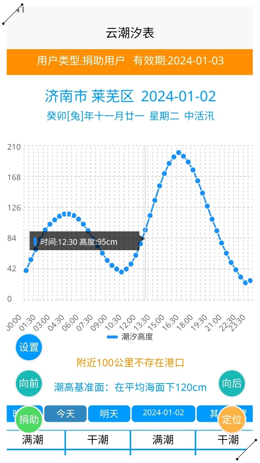 4、可以随时浏览不同时段的潮汐曲线图,全面了解潮汐起伏情况。
