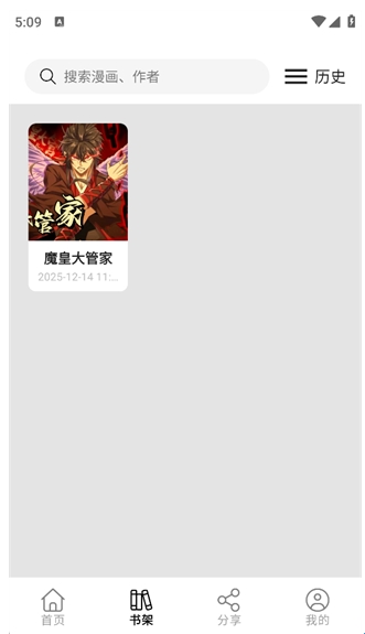 5、书架里会显示已收藏的漫画,方便快速找到想看的内容。