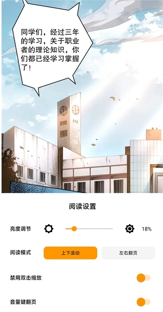 4、阅读中能调亮度、切换上下滚动/左右翻页模式,还能开音量键翻页。