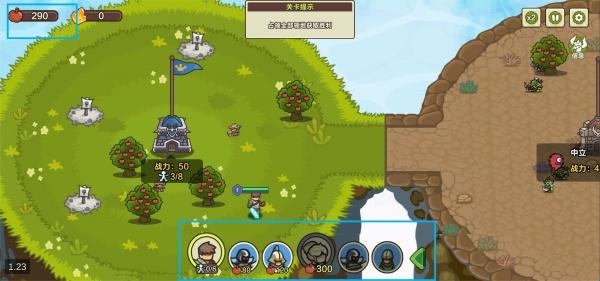 2、进入关卡后,先双击城堡增加采摘果树的农民,积累资源。