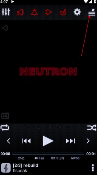 1、打开软件,进入播放器页面后点击右上角的三条横杠图标