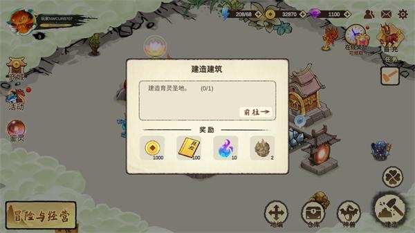 4、不断建造各种建筑来解锁新的功能,召唤不同的神兽来外出探索冒险。
