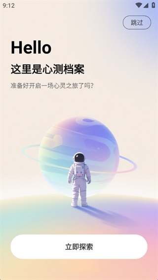 1、点击“立即探索”即可进行测试,也可以点击“跳过”快速进入app;