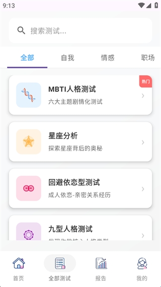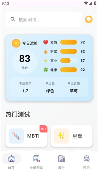3、包含了丰富的测试,涵盖不同类型的测试,帮助用户了解自我;