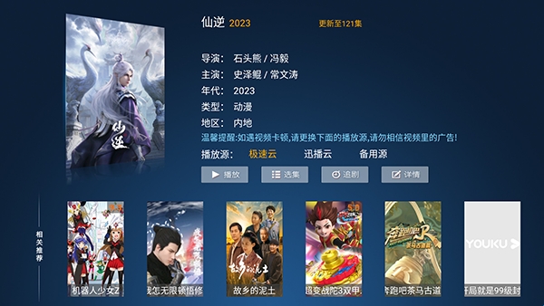 1、专为大屏电视端打造的智能追剧平台,整合全网热门影视资源,涵盖多种内容类型,满足不同年龄层和兴趣偏好的用户需求。