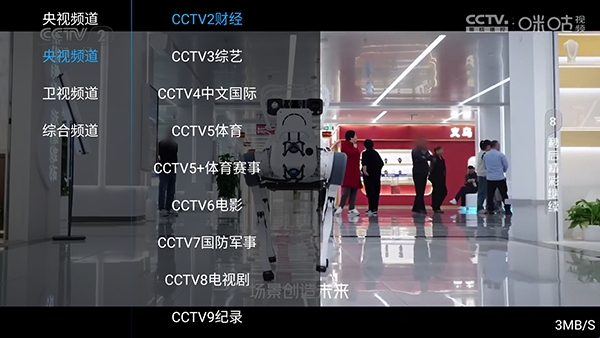 2、点击左侧屏幕唤起电视频道列表,电视端用户直接用遥控器换台。