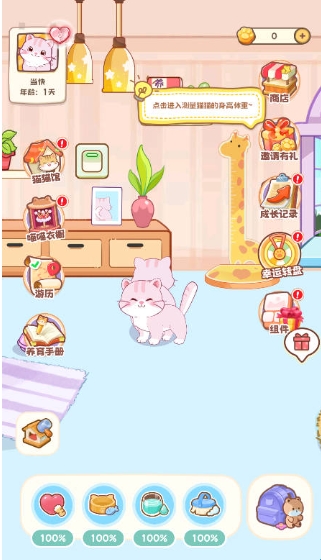 用户可以给猫咪喂食、洗漫、梳毛等,照顾猫咪的日常生活。