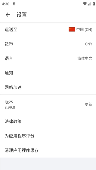 4、语言的切换、货币的结算币种、送货国家地区都可以在设置界面中进行设置。
