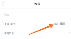 2、进入设置页面,点击手机账号。