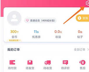 1、首先打开软件,进入个人中心,点击右上角的设置按钮。
