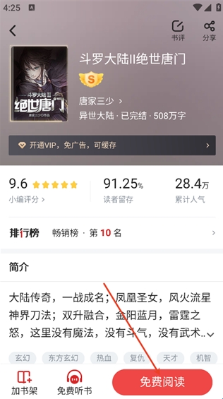 3、点击开始阅读也可以听书