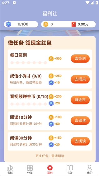 5、点击他就会跳转到福利社这里可以完成一些任务获得现金红包