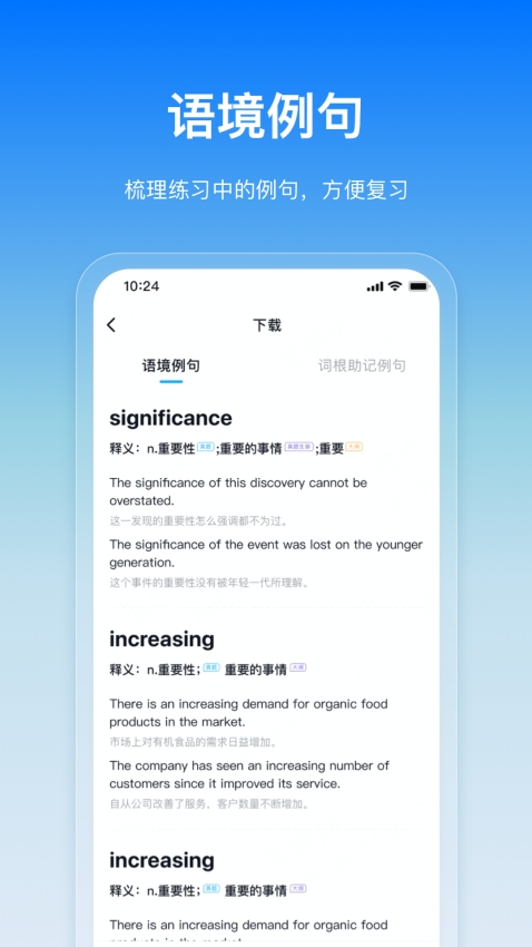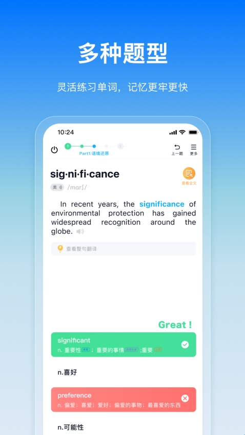 每掌握一个新单词,都能见证词汇量增长。专业老师风趣授课,把晦涩知识讲得妙趣横生。巧设语境如精彩故事,让你轻松学单词。无论单次突击还是长期积累,都能毫无压力坚持。