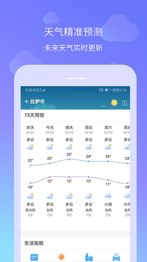 3、精准预报,精准预测用户的衣着和出行天气,用户可以更好地了解气候。