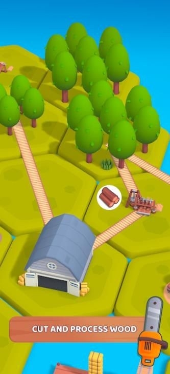 3.如下图所示,林场建造完毕之后长按林场,会出现道路,将道路连接至下方的小屋,让伐木工将林场的树木运送至小屋吧。