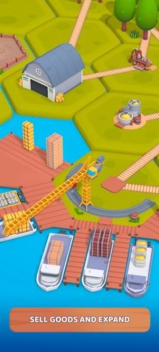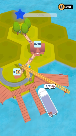 4.如下图所示,玩家还需要建造小屋到港口道路,才能够将加工好的木材通过轮船运输出去,才能赚取更多金币!