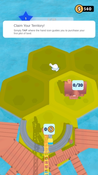 1.如下图所示,点击未解锁的土地,消耗金币来购买土地吧!