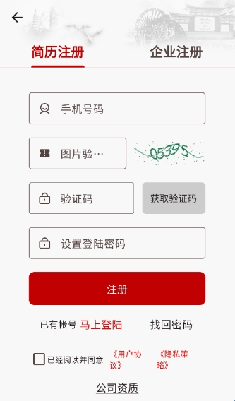 1、新用户登录需要先注册简历。