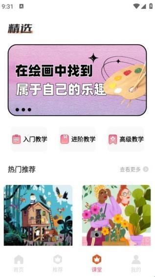 3、点击课堂,是可以去学习到更多的绘画技巧,学习资源丰富。