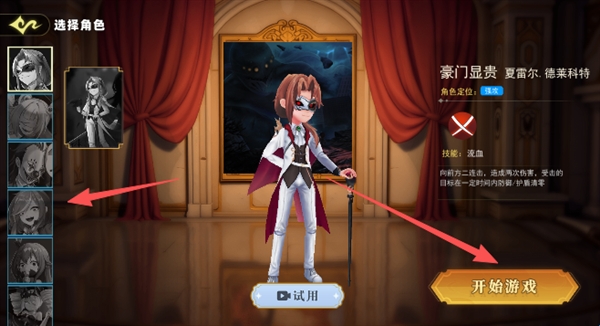 2、从四名初始角色中选择你喜欢的作为通关挑战的人物;