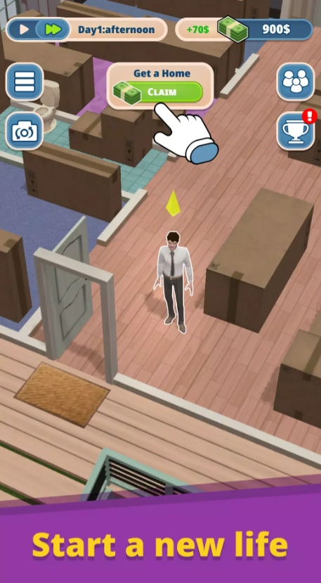 1、创建专属角色后规划住宅,合理分配初始预算购买必需家具与装饰品,打造温馨舒适的初始居住空间。