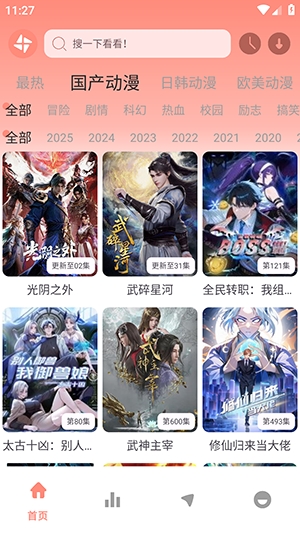 1、进入软件后可以按照分类筛选感兴趣的动漫。