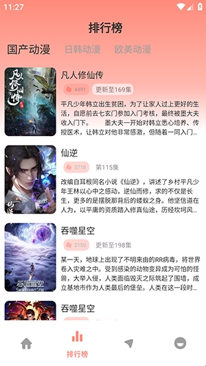 2、点击排行榜功能可以实时查看热门动漫番剧。