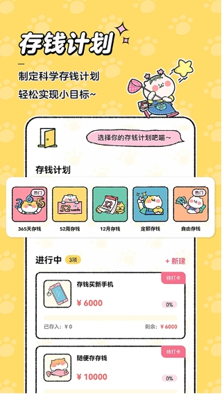 喵喵记账是一款以猫咪为主题的萌宠记账软件。软件有着多种功能,帮助你打造存钱计划,自定义首页可视图,建立桌面小组件等,帮助你养成花钱记账的好习惯,软件内有着支出、收入账单,方便你知道每一笔钱用在哪里,不让钱没得莫名其妙。另外存钱还能撸猫哦,趣味的记账方法,快来下载使用吧。