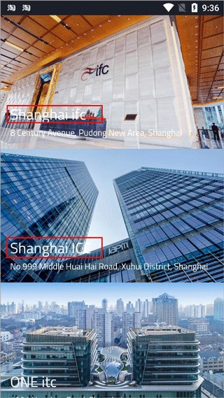1、打开办公易App,首页展现的是各个商业大厦以及地址;