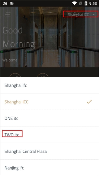 6、点击商业大厦主页右上角按钮,在下拉列表可以选择其他想了解的大厦。