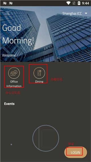 2、选择其中一个地址打开,有Office Information、Dining及LOGIN(可以登录查看);