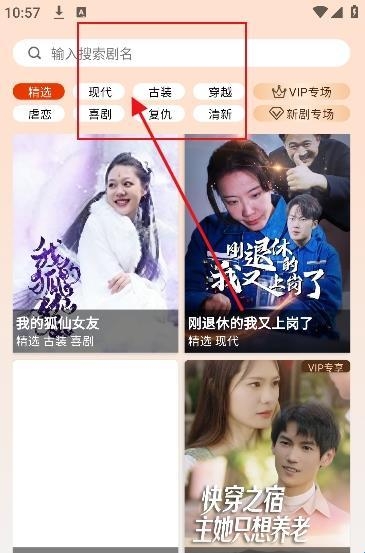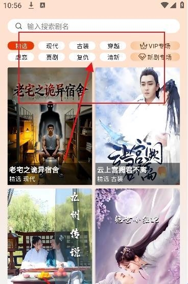 2、进入剧场,可以筛选短剧观看类型,题材等