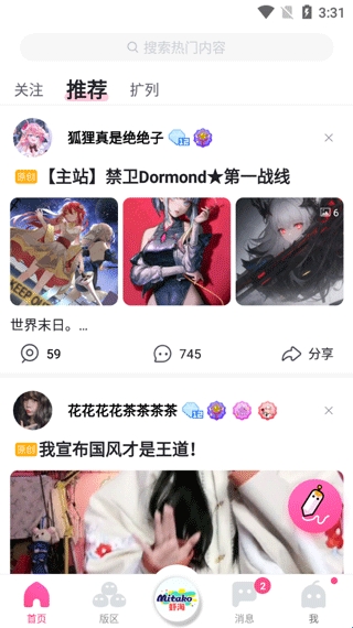 4、猜你喜欢,推送实时热门动漫资讯,一起开启吐槽正确姿势人气官方版娘弹娘,弹妹携手番剧、绘画、K、鬼畜、COS、东京食尸鬼、从零开始异世界、进击的巨人、动漫美图、刀剑神域、动漫资讯、V家、FATE、手工各分区版主,陪你一起。