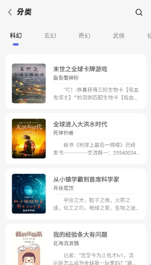 若广场推荐中没有想看的书,可以直接去“分类”中按喜好查找。