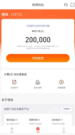 微博钱包,是一款在用户急缺钱时给用户提供资金帮助的软件。软件资质齐全,持牌金融机构,与多加权威银行深度合作,灵活分期安心借款,最高可支持12期,用户可以凭借身份证申请分期贷款,可线上自动审核,无需线下奔走,非常方便。平台将会用户的个人信息加密保护,全部流程透明化进行。小编提醒:网贷有风险,借钱需谨慎。