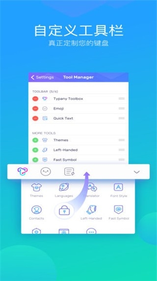 Typany输入法英文名叫Typany Keyboard,是一款功能强大的手机输入法软件。软件主打自定义编辑,不仅有超多字体、按键音、动画可供diy设定,还有诸多常用工具可以免费使用,并且像是大键模式、左手键盘等都能设置,满足不同用户的使用需求。有需要的朋友们欢迎下载。