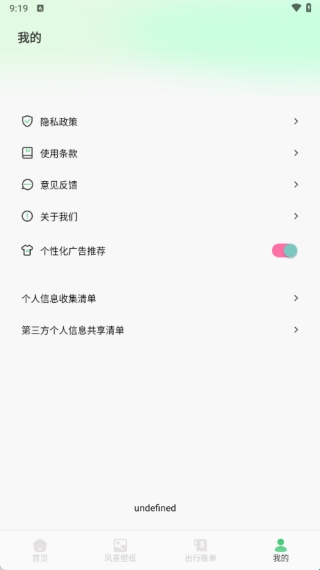 3、来到软件我的页面,可使用隐私政策、使用条款、意见反馈等功能。